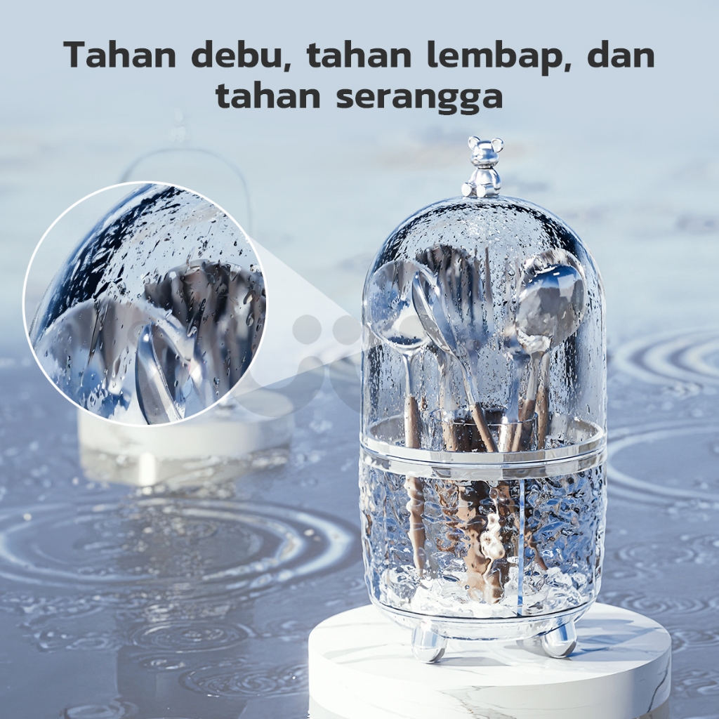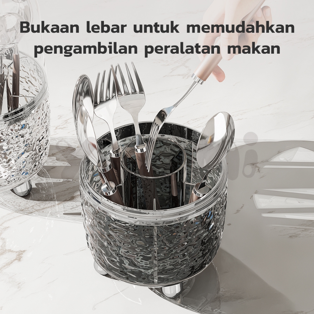 YUUMI Tempat Sendok Garpu Berputar - Organizer Multifungsi untuk Kuas Makeup, Kosmetik, Alat Tulis, & Perlengkapan Dapur