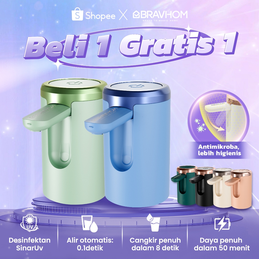 BRAVHOM Pompa Galon Dispenser Galon Bawah Lipat Desinfektan SinarUv 50 Menit Pengisian Cepat BL-WD02