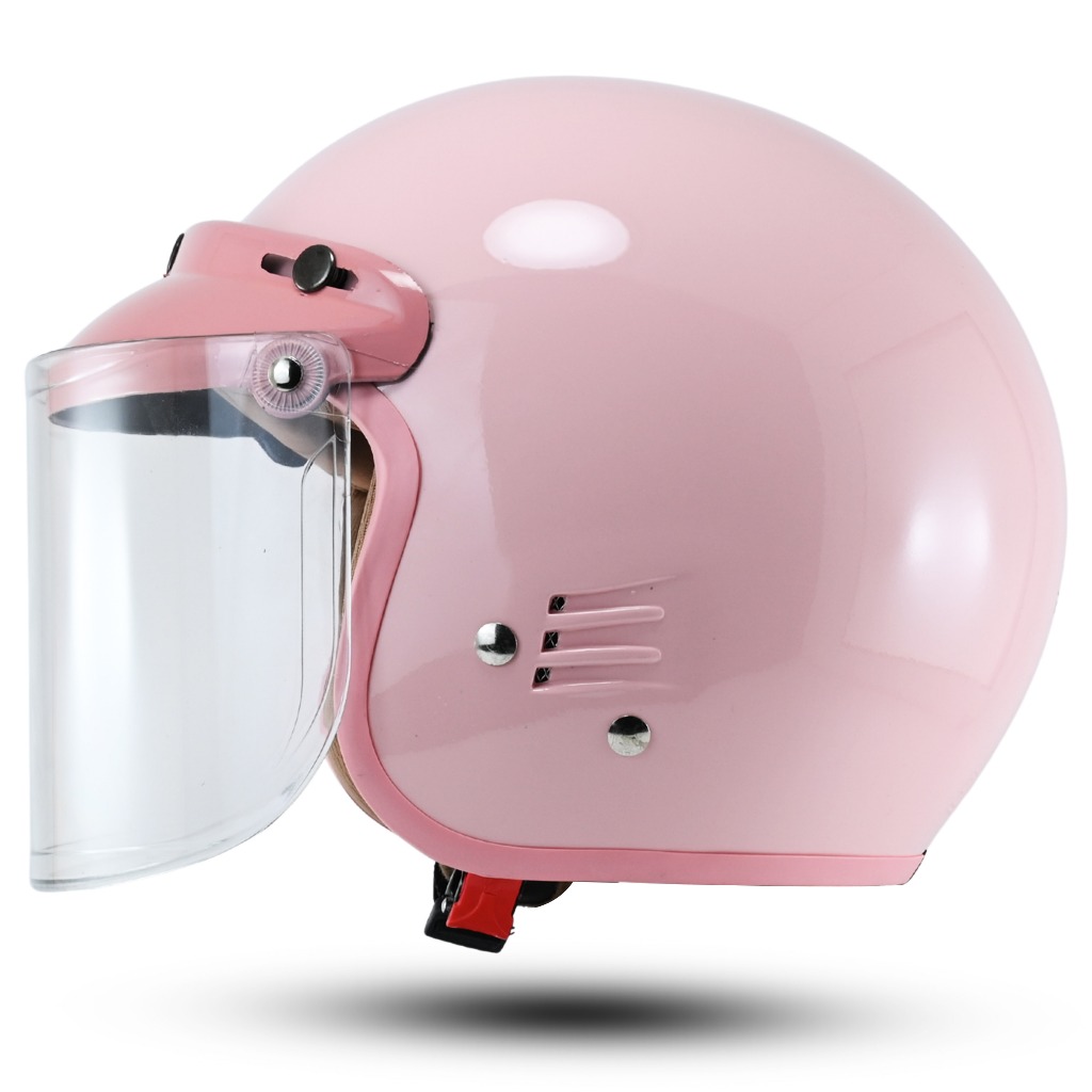 Helm Bipplast CEWEK Retro Bogo Solid LUMINOS Wanita Kekinian Kaca Datar SNI Motorcycle