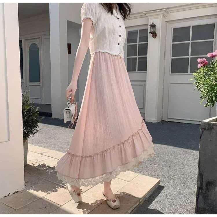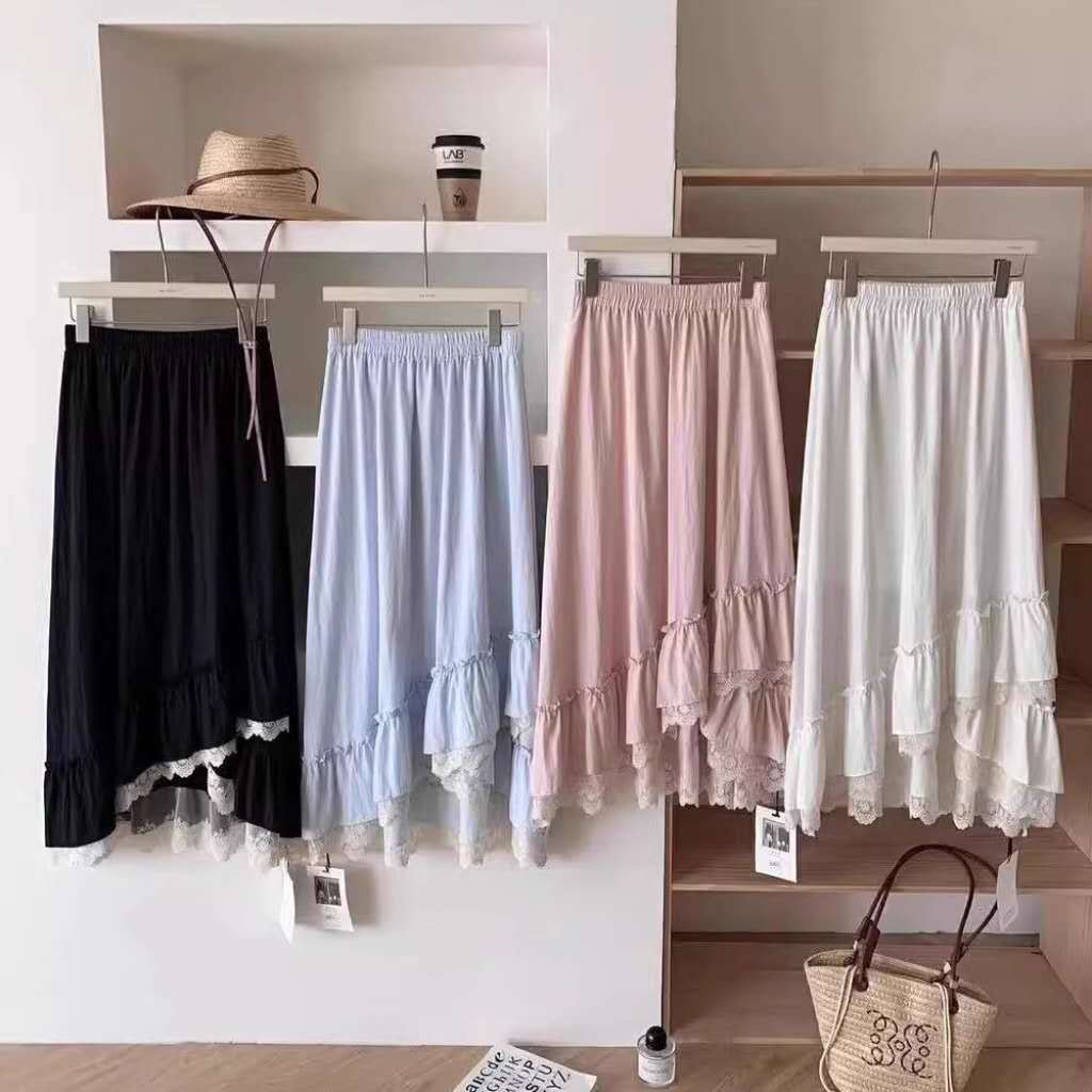 Rok Panjang 88cm Hijab Friendly Korea Asimetris Ruffle dengan Renda Cantik 4 Warna