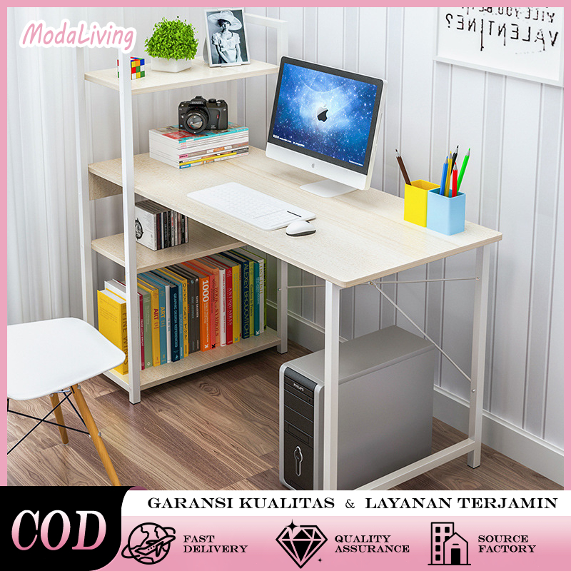 Meja Kantor & Belajar Multifungsi dengan Rak Buku - Desain Minimalis, Kokoh untuk Komputer & Menulis | GRATIS ONGKIR