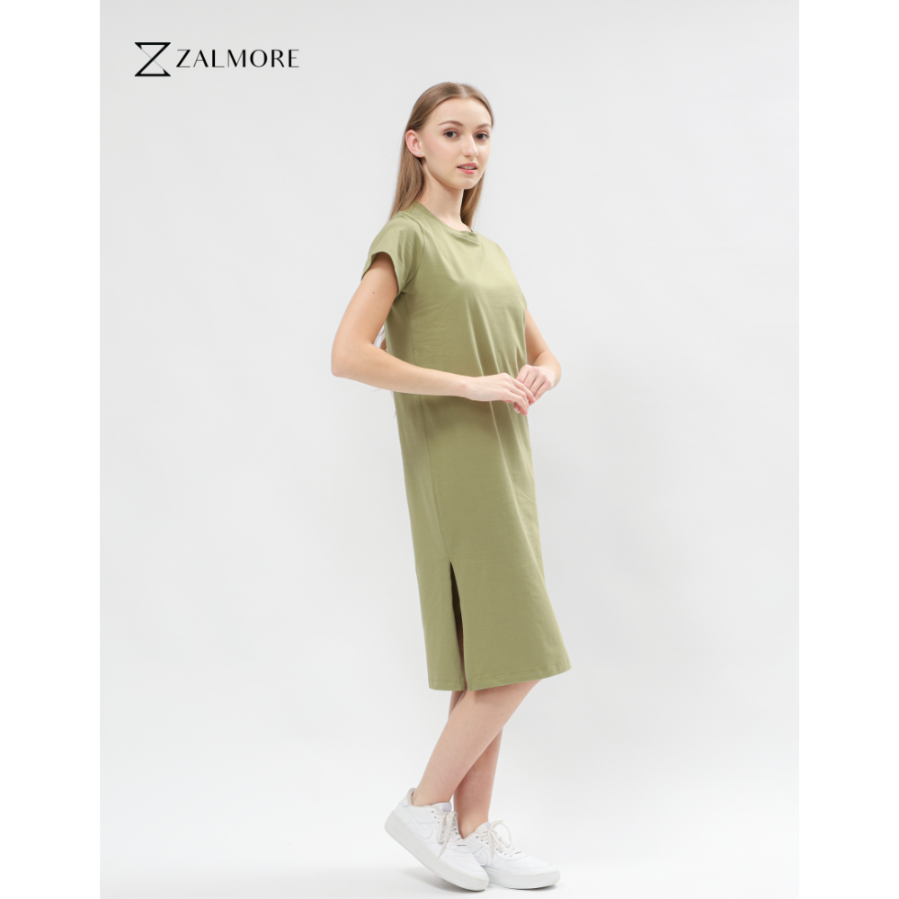 Zalmore Luma Cotton Basic Midi Dress with Slit Premium Cotton