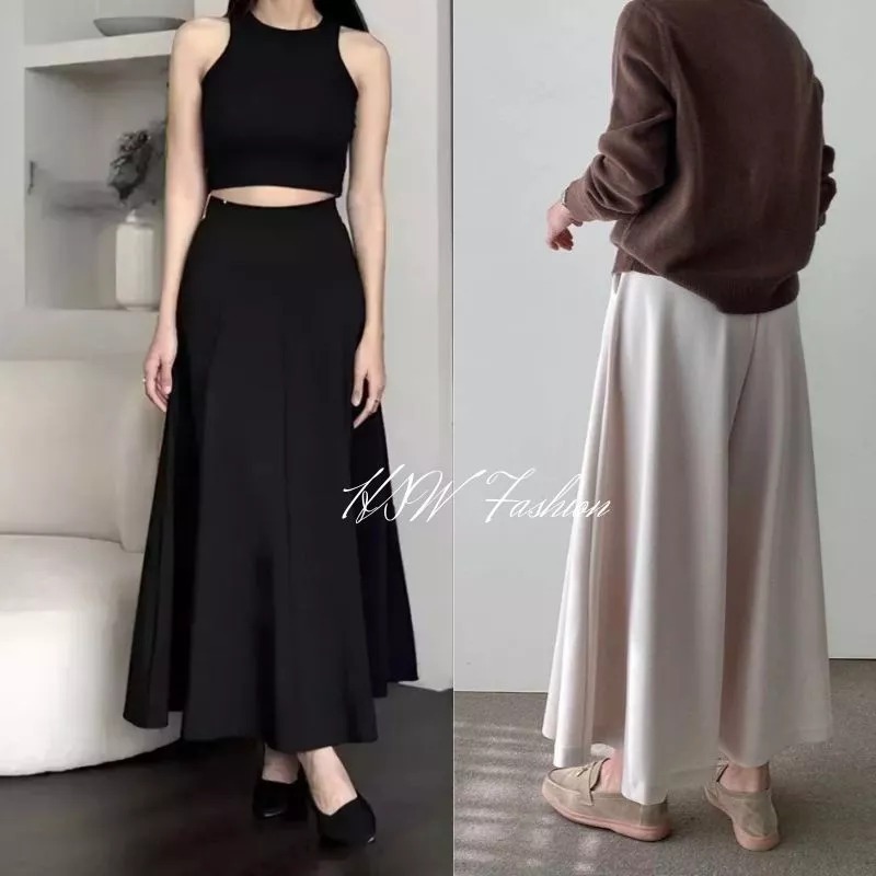 Audy Skirt - Rok Korean Wanita Loose Maxi Skirt Scuba Anti Kusut Polyster - Rok Flare Scuba - Rok Basic Scuba Premium