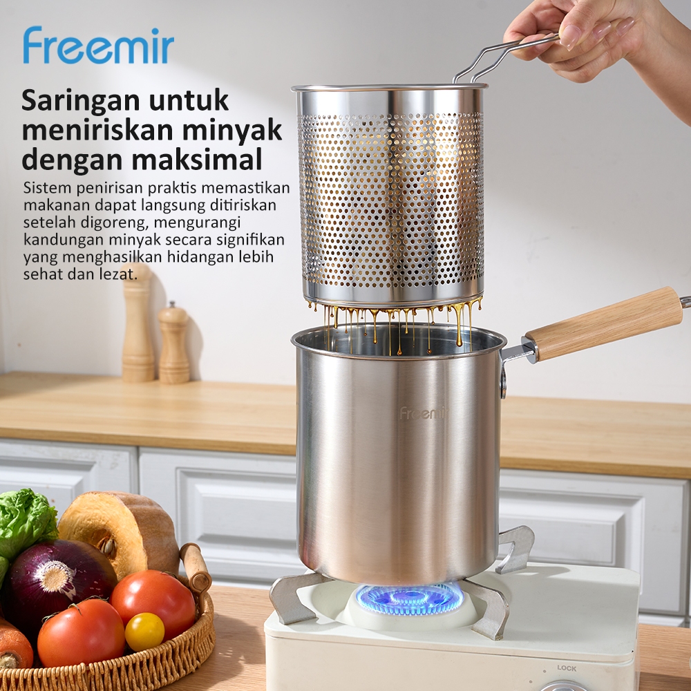 [OFFICIAL] freemir 4 in 1 Multi Deep Fryer Panci Penggorengan Rebus Stainless Steel Saringan Capitan Klip Makanan Panci Rebus Multifungsi GARANSI
