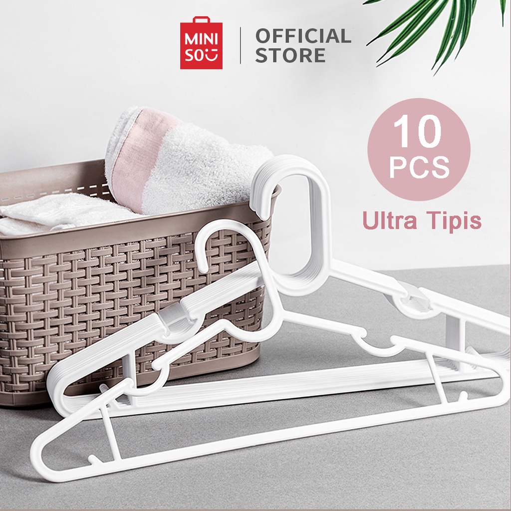 MINISO - Gantungan Baju Hanger Baju 10pcs Hanger Baju Dewasa 40cm Anti Slip Hanger Plastik Gantungan Serbaguna Tempat Gantungan Hanger Jilbab Gantungan Gaun