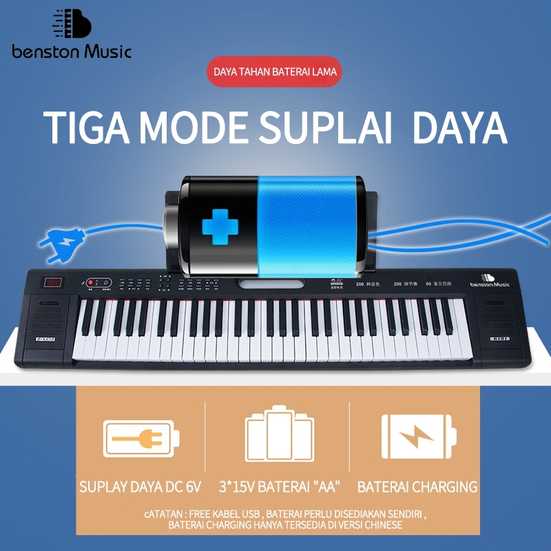 Benston Music Keyboard Elektrik 61 Tuts ,Keyboard Untuk Pemula , Portabel , Keyboard Elektrik Cerdas , Banyak Nada