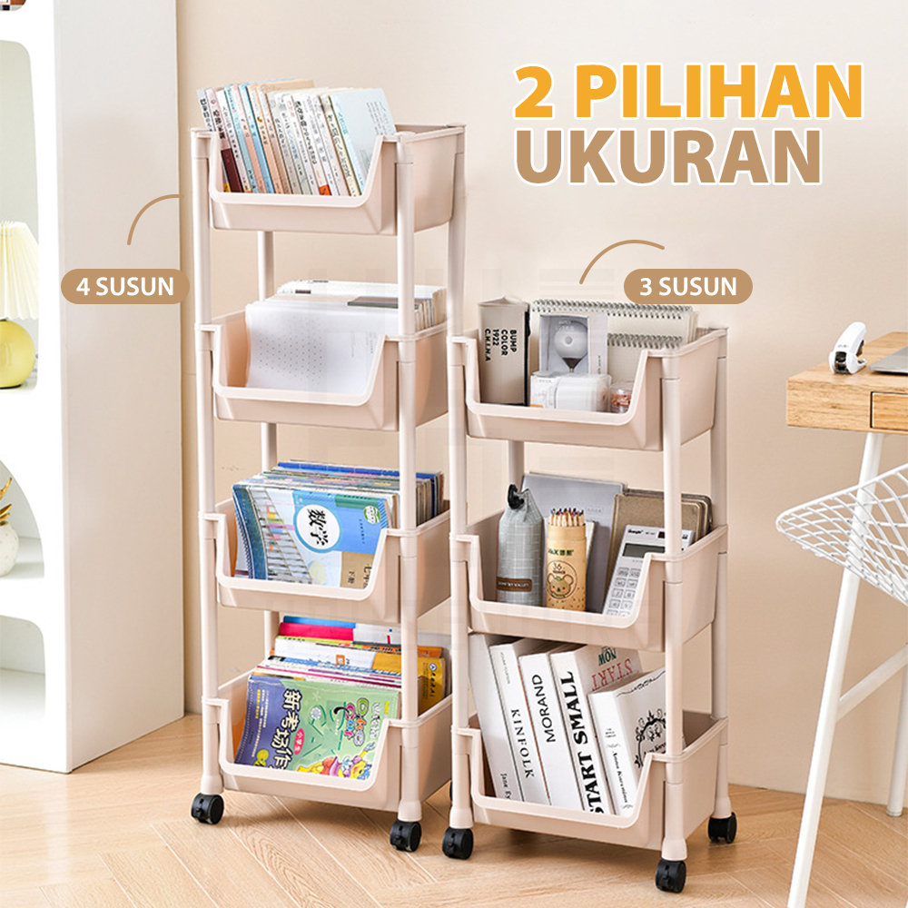 Hoptech - Rak Susun Serbaguna 3-5 Tingkat dengan Roda Portable untuk Buku Mainan & Penyimpanan