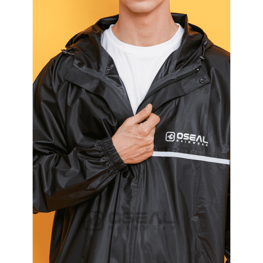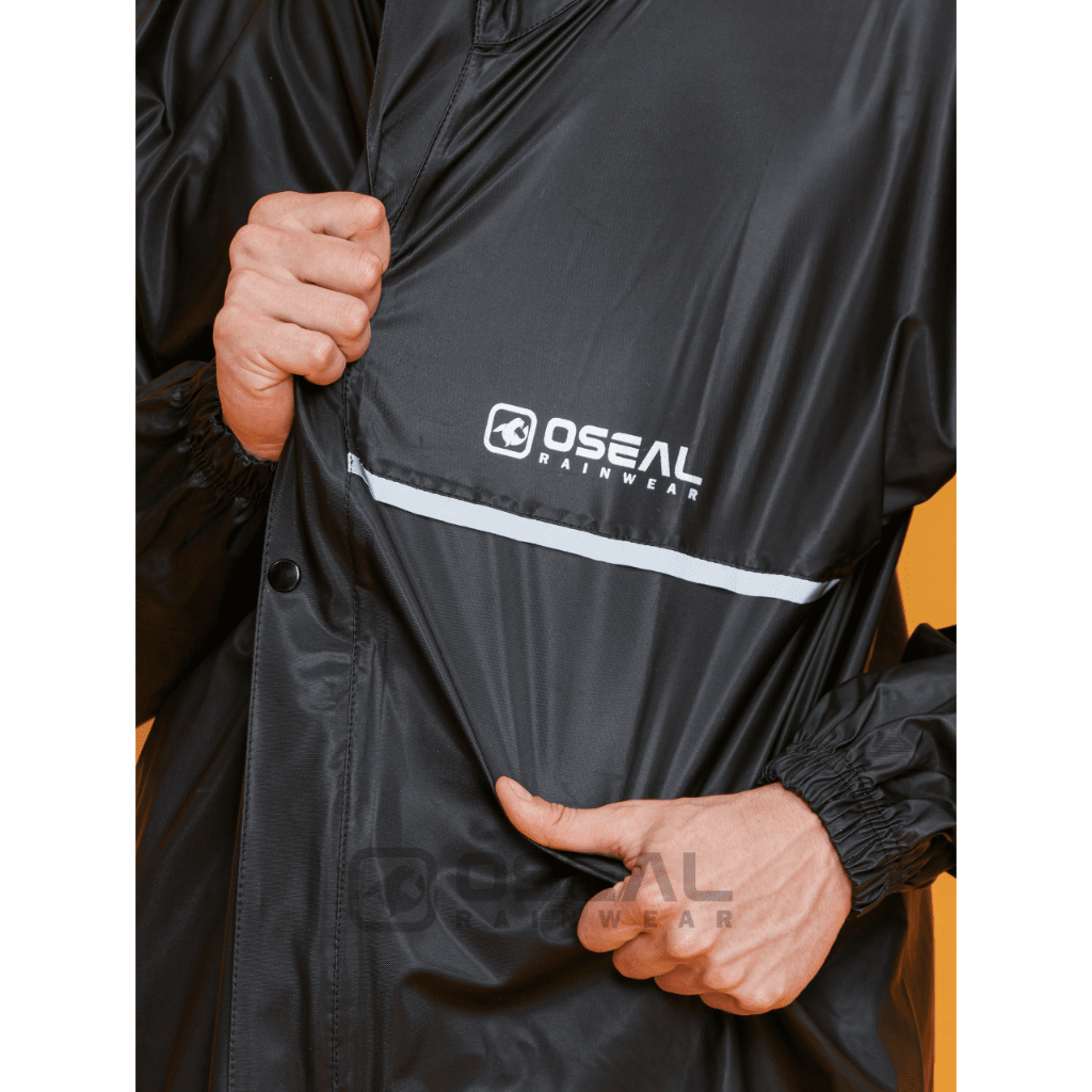 Jas Hujan OSEAL Full Seal Raincoat Mantel Pria Wanita Dewasa Shine Series Hitam