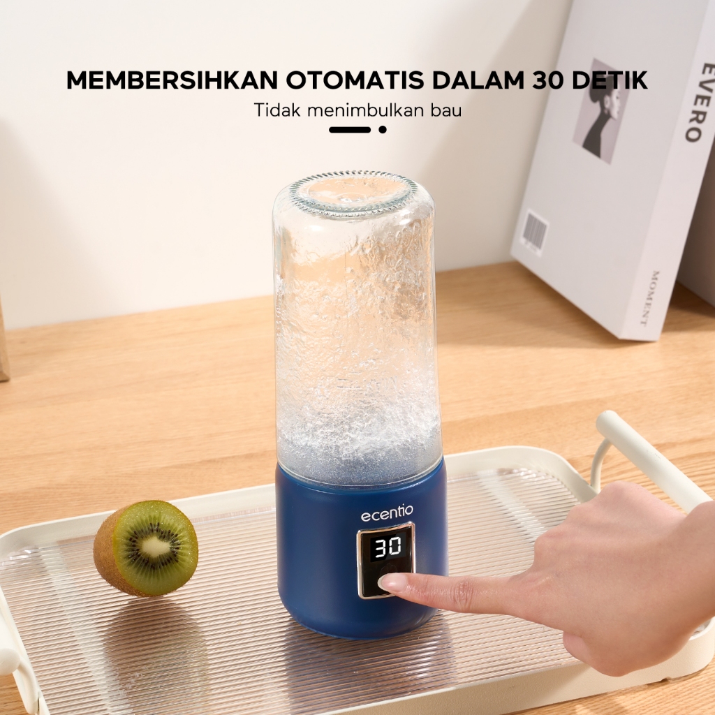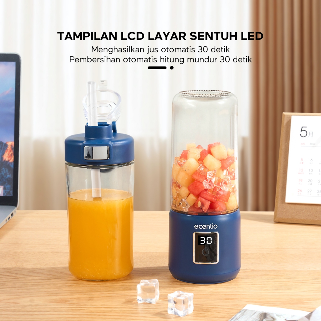 ecentio Juicer Portable LED Touchscreen Dual Cup 500ml+500ml Kaca Gelas MPASI Premium 12 Mata Pisau Juicer Bayi Food Grade Anti Tumpah Garansi 1 Tahun