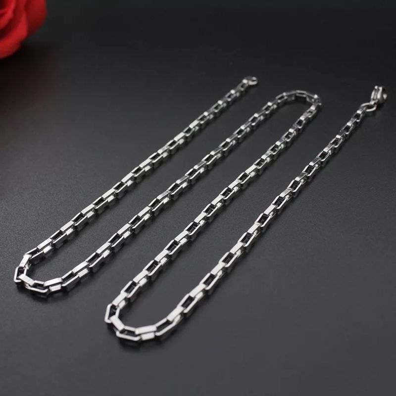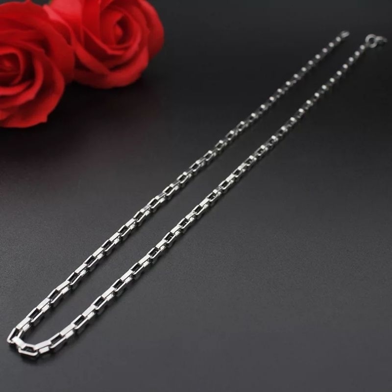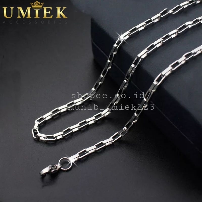 Kalung Pria Wanita Titanium Rantai asli kotak persegi Rante silver perak putih panjang cowok keren cewek cowo cewe anti