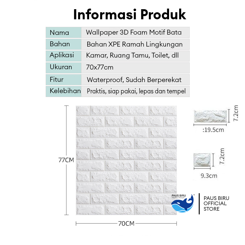 Paus Biru - (Paket 10 Lembar) Wallpaper Dinding Foam Timbul 3D Bata Classic Brick 70x77cm