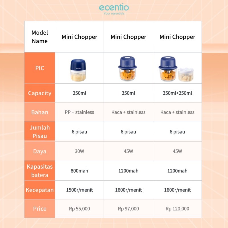 ecentio Mini Chopper Blender 6 pisau 250ml Portable Penggiling Bumbu Dapur Portable Penumbuk bawang biru gelap