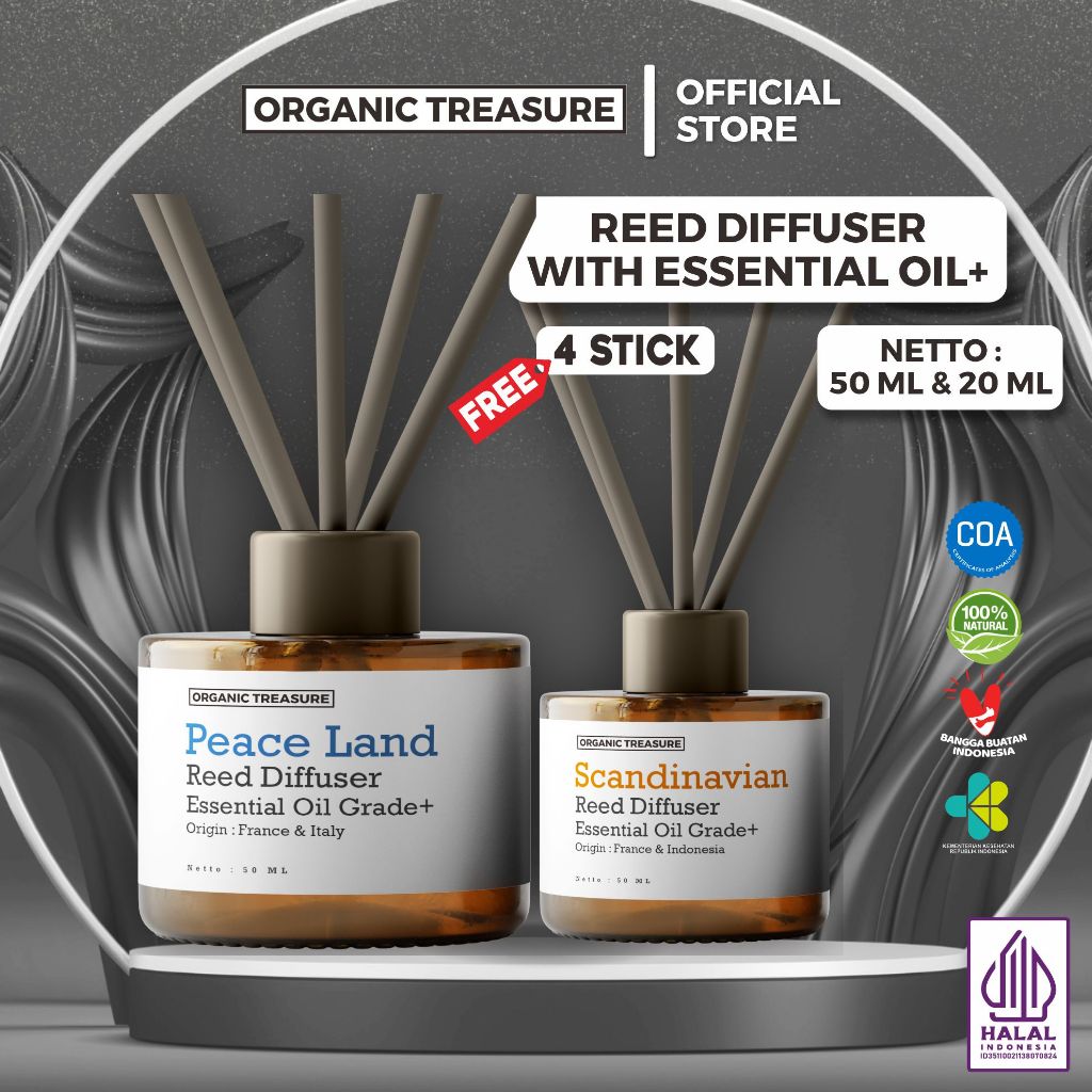 ORGANIC TREASURE - Reed Diffuser with Essential Oil Grade+ All Variant Best Seller [FREE 4 STCICK]
