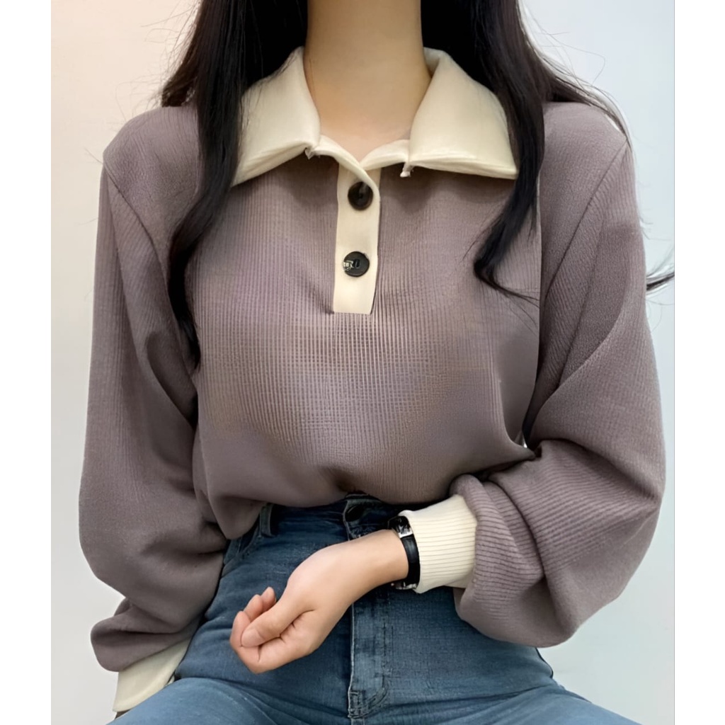 Vallina - Kanya Collar Button Sweater Oversized Outerwear Remaja Wanita Korean Style Premium
