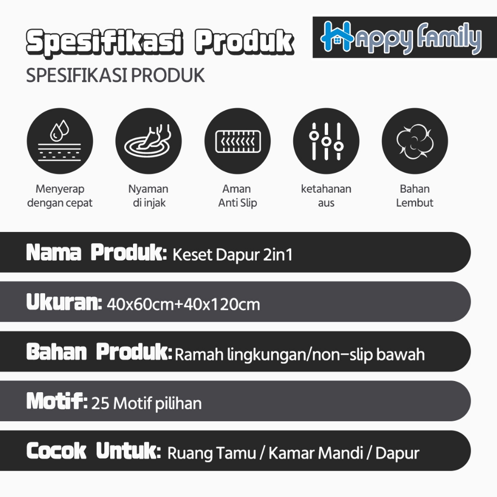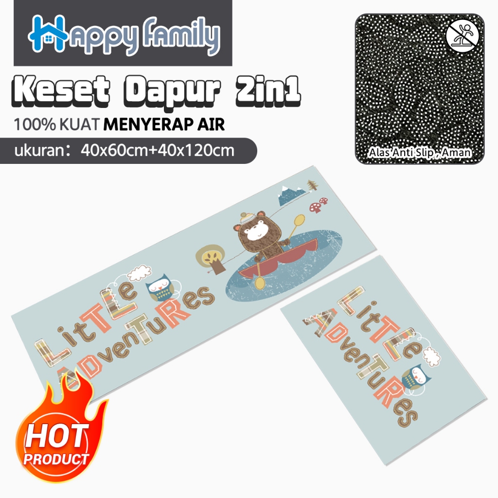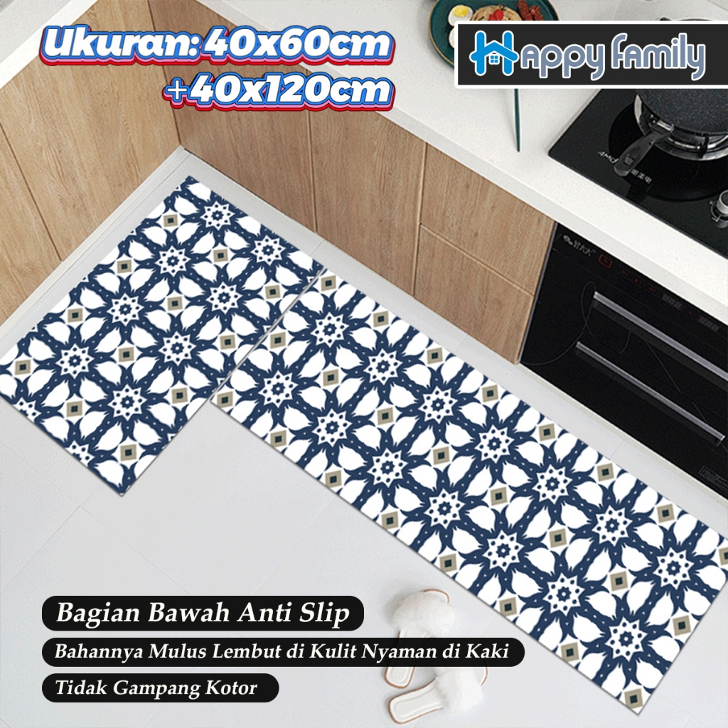 (HF) LOKAL Keset Lantai Dapur 2in1 Kitchen Floor Mat Set Anti Slip 40x60cm & 40x120cm Bahan Halus