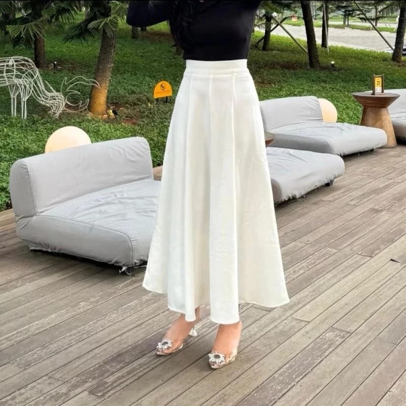 Audy Skirt - Rok Korean Wanita Loose Maxi Skirt Scuba Anti Kusut Polyster - Rok Flare Scuba - Rok Basic Scuba Premium
