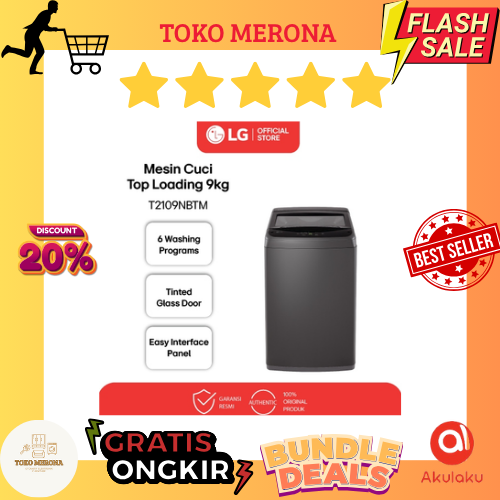 [Star] MESIN CUCI LG 9KG TOP LOADING T2109NBTM MESIN CUCI TURBO LOW WATT GARANSI RESMI (ORI) CREDIT 0% GRATIS ONGKIR!!!