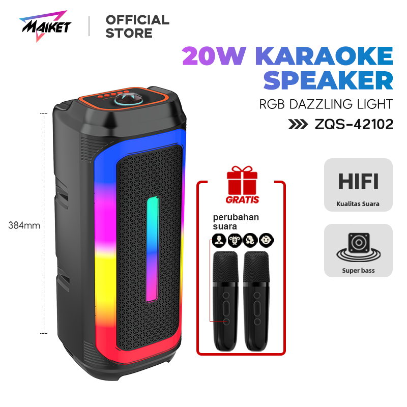 Speaker Bluetooth Karaoke 2 Wireless Mic Super Bass RGB Spiker 18 In Murah Spiker Aktif Blutut Subwoofer Politron