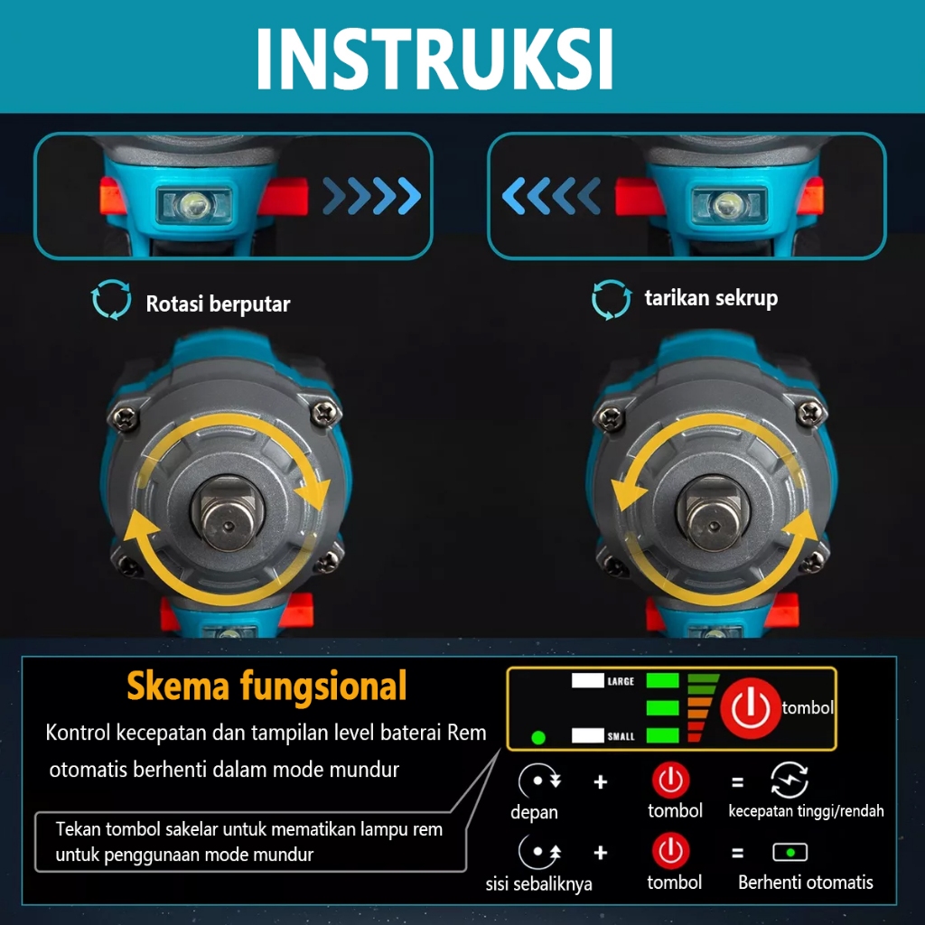 MAKlTA 1090V/588V Cordless Impact wrench Brushless Mesin bor Impact baterai Impact 2baterai impek baterai torsi besar Un