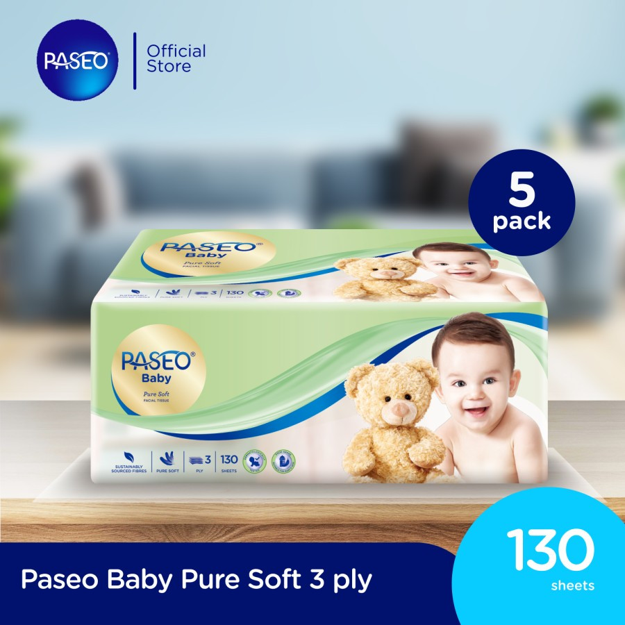 Paseo Baby Tissue Bayi Soft Pack 130 Sheets x 5 Packs