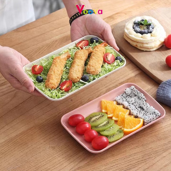 VOOVA Wheat Straw Piring Persegi Panjang / Piring Sushi Rumah Tangga / Piring Camilan Barbekyu / Piring Gulung Usus / Piring Plastik