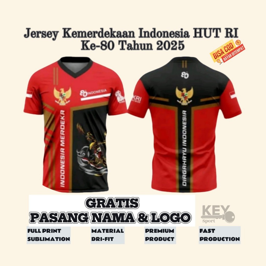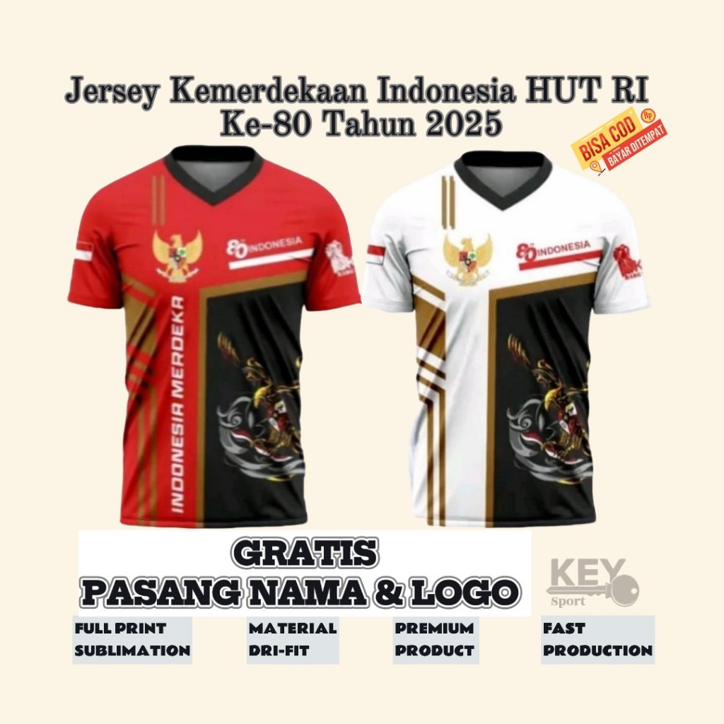 Baju Jersey Dirgahayu HUT Kemerdekaan RI Ke 80 2025 Gratis Pasang Nama Dan Logo