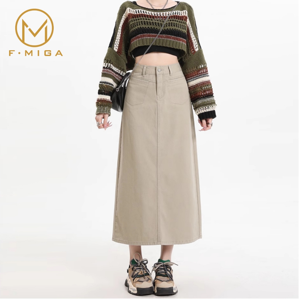 F·MIGA C74 Rok Jeans Wanita Rok Kasual Wanita High Waist-Khaki