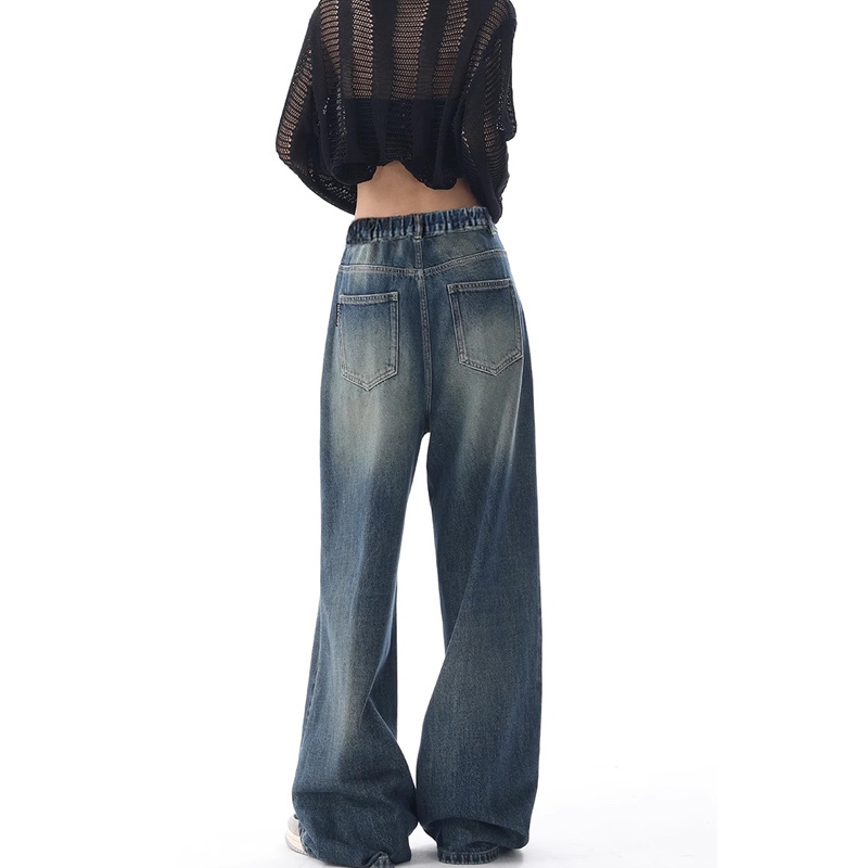Keygirl Celana Baggy Jeans pinggang karet celana kulot wanita jumbo size S-5XL Korean Style fashion pants