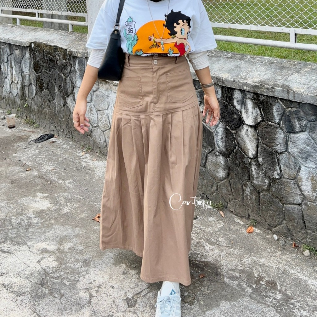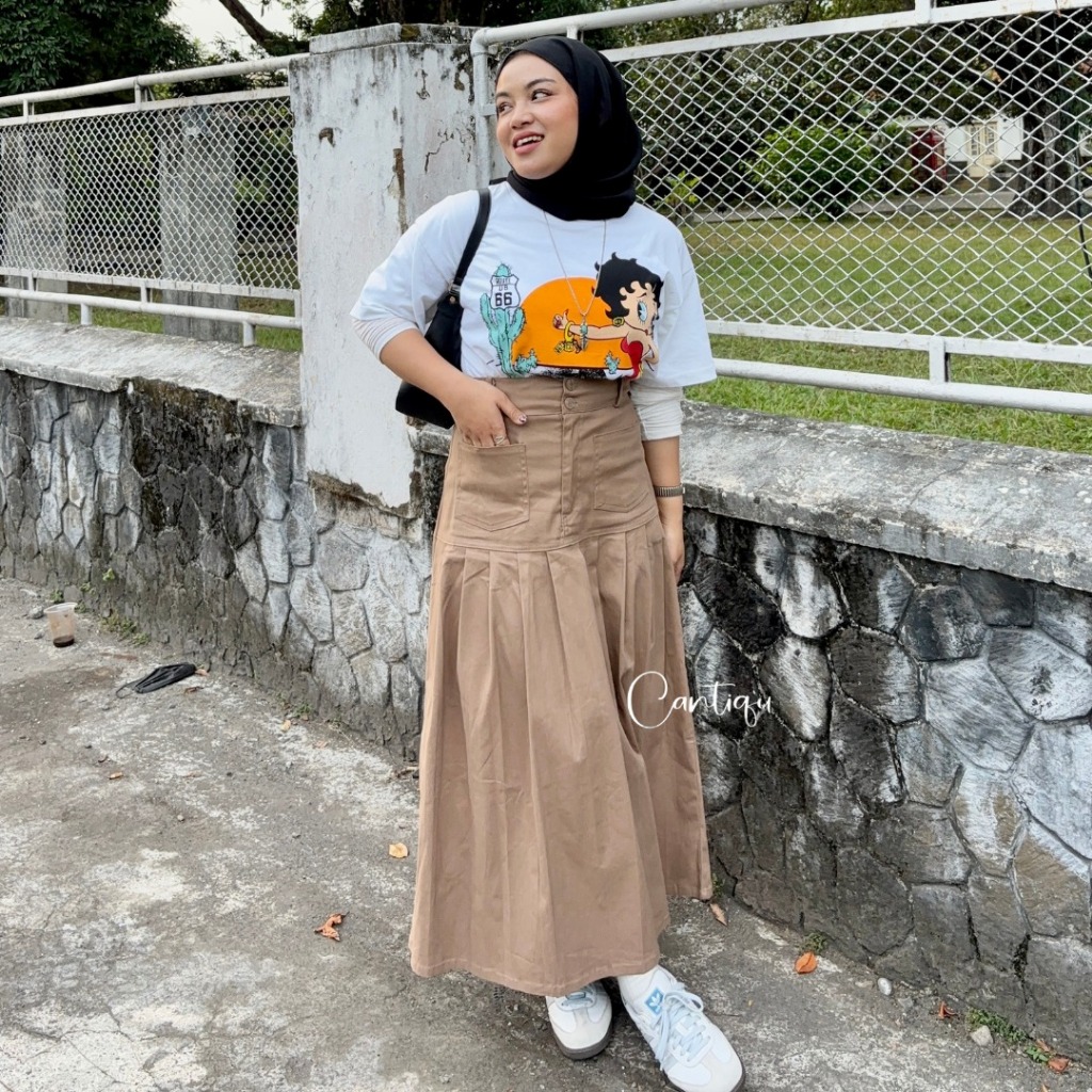 Cantiqu - Helwa Rok Manyung Skirt Wanita Bahan Katun Twill