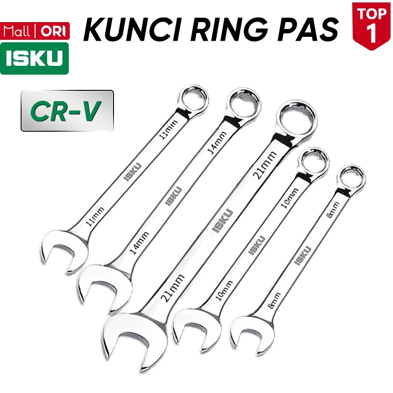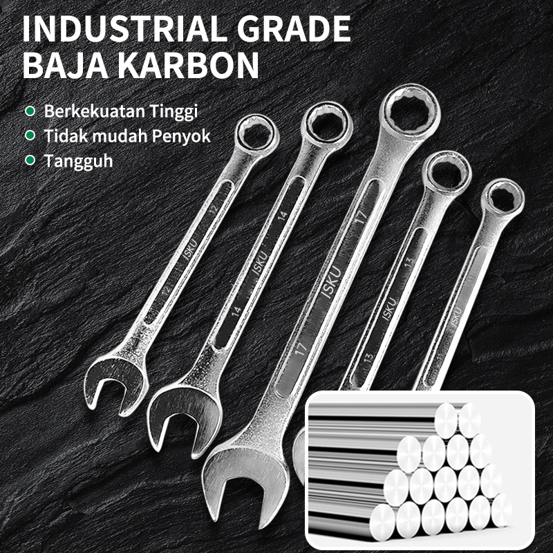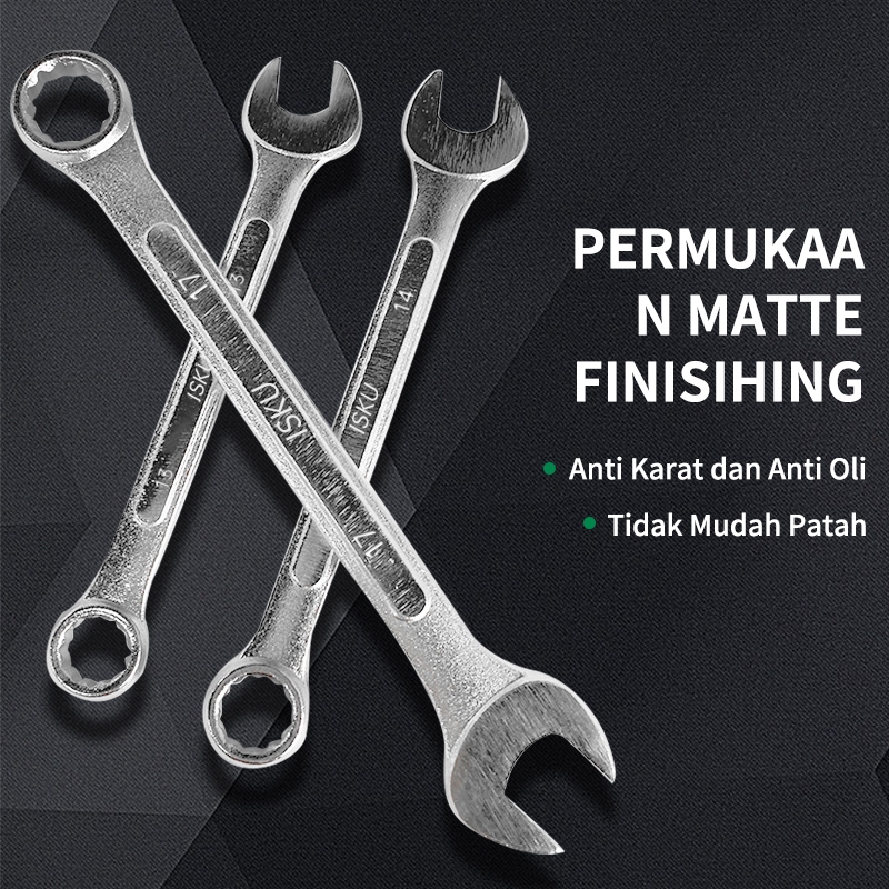 ISKU Kunci Ring Pas Set Wrench Spanner 8mm-24mm Bahan Kuat Anti Karat Alat Perkakas