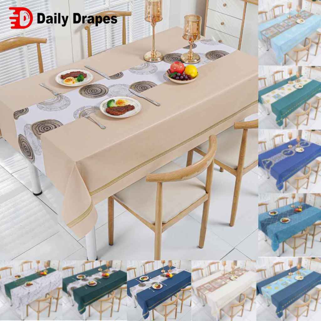 Taplak Meja Makan Motif Emboss Aesthetic Bahan PVC Premium Table Cover Berbagai Pilihan Ukuran - B