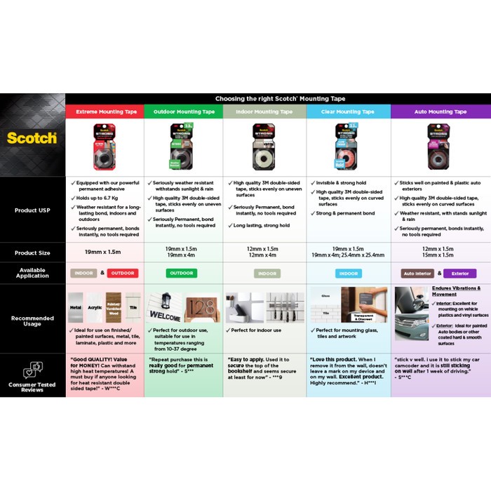 Scotch 3M Auto Exterior Perekat Isolasi Mounting Tape 12MM X 1.5 M