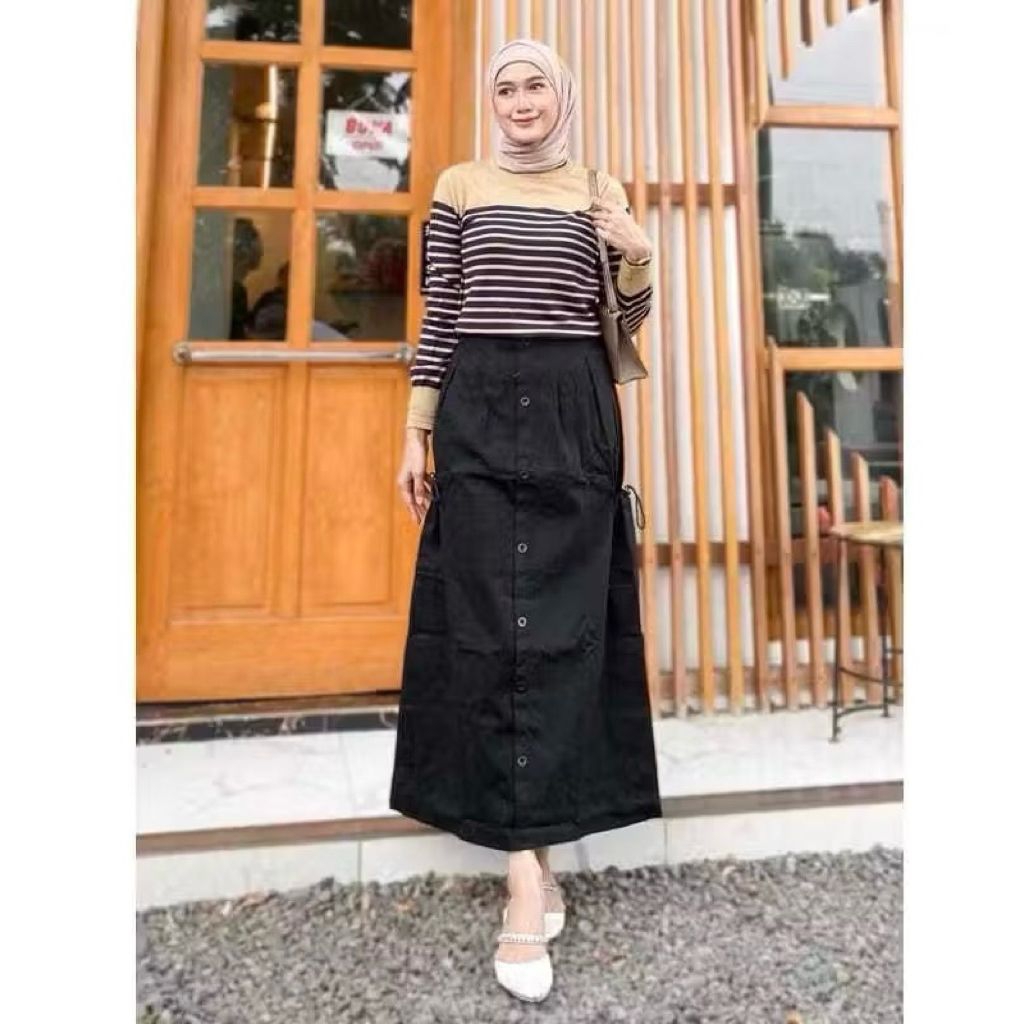 Rok Kargo Viny A-Line Bahan Katun Twill Combet Premium Rok Kargo Korean Style Full Kancing Depan Kekinian