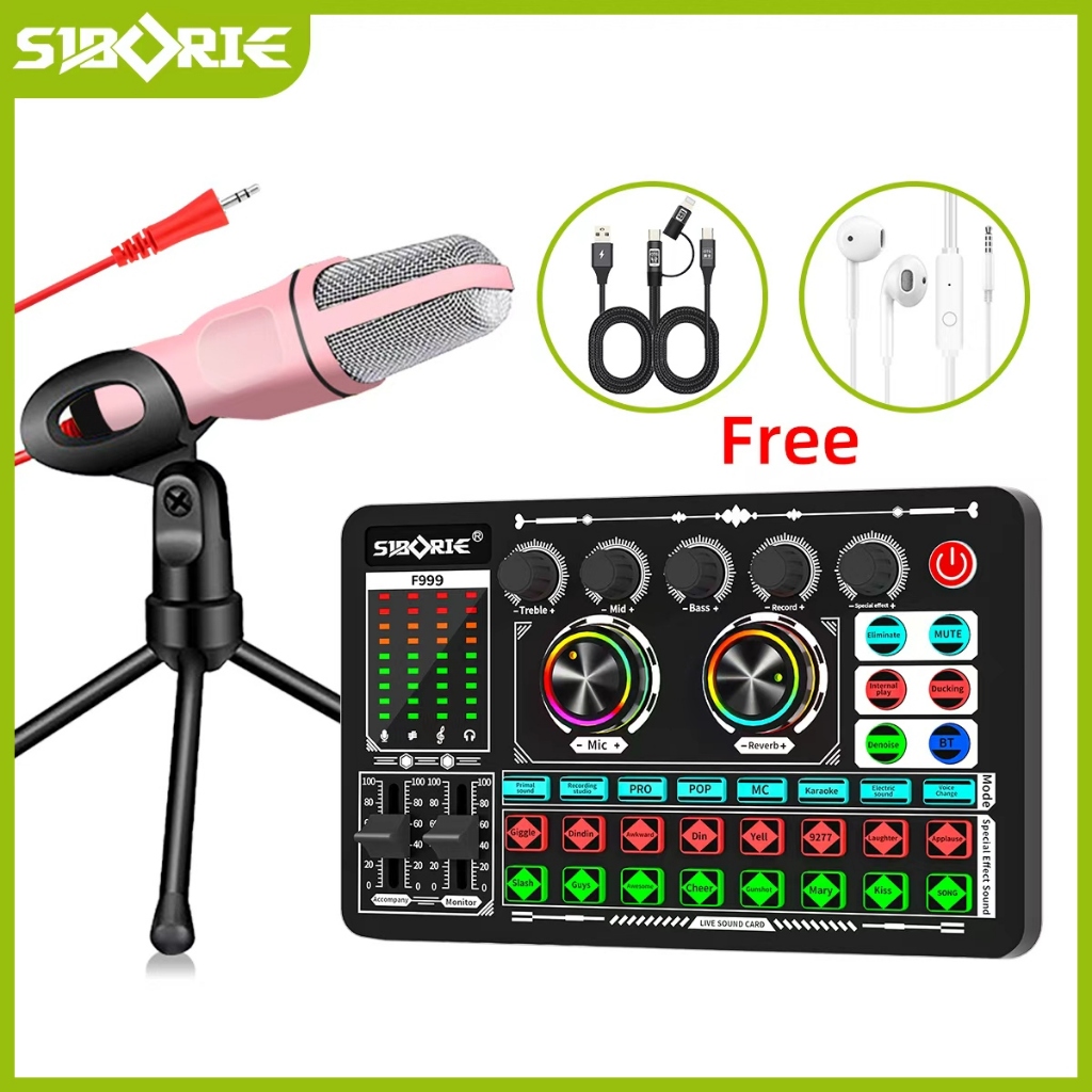 Soundcard Siborie FREE OTG dan Headset F999 +SF666 Mic+E10 Headset+OTG-2IN1 Paket Komplit Full Set Paket Recording Lengk