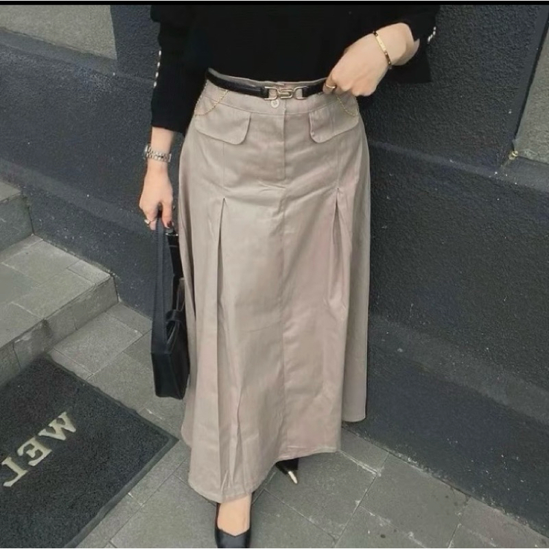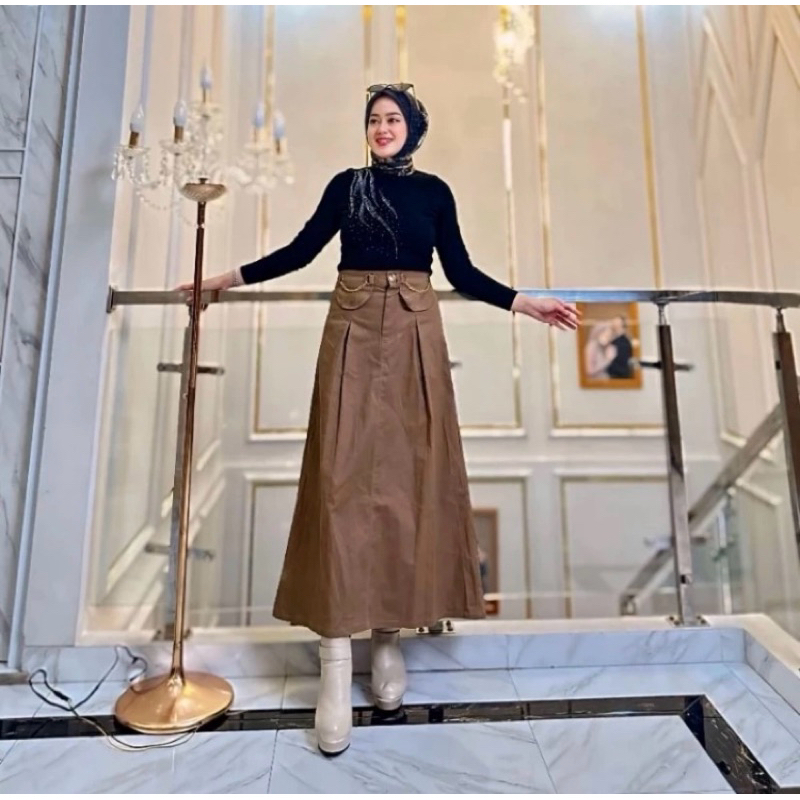 ROK ALICE KATUN TWIILL PREMIUM ROK KOREAN STYLE KEKINIAN MODEL ALINE MAYUNG LEBAR