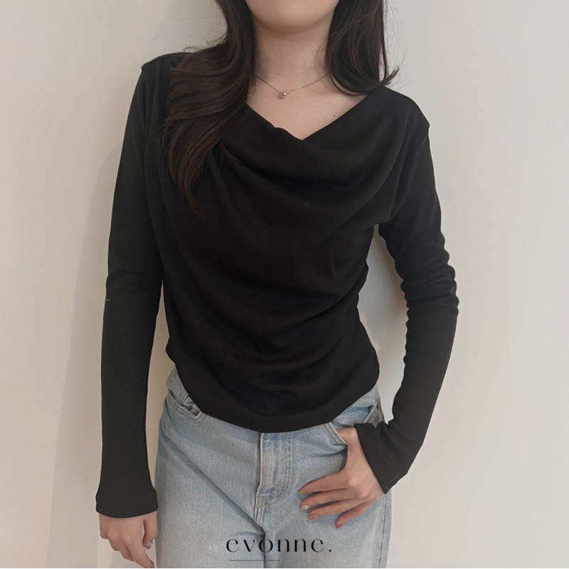 EVONNE WonYoung Top - Atasan Wanita Long Sleeve - Baju Lengan Panjang Wanita Knit Top Blouse E-304