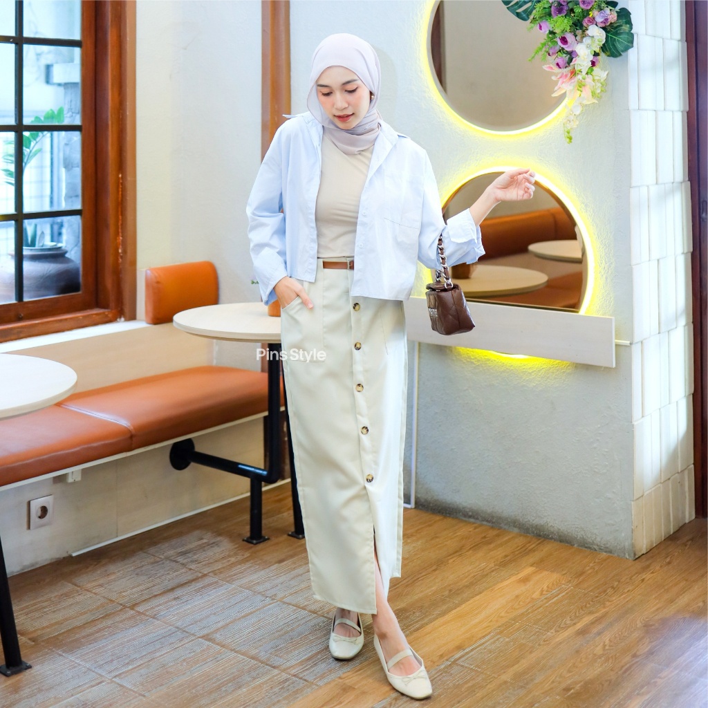 PINS Arin Skirt - Rok Span Wanita Korean Style Midi Panjang Elegan Semi Wool Free Belt