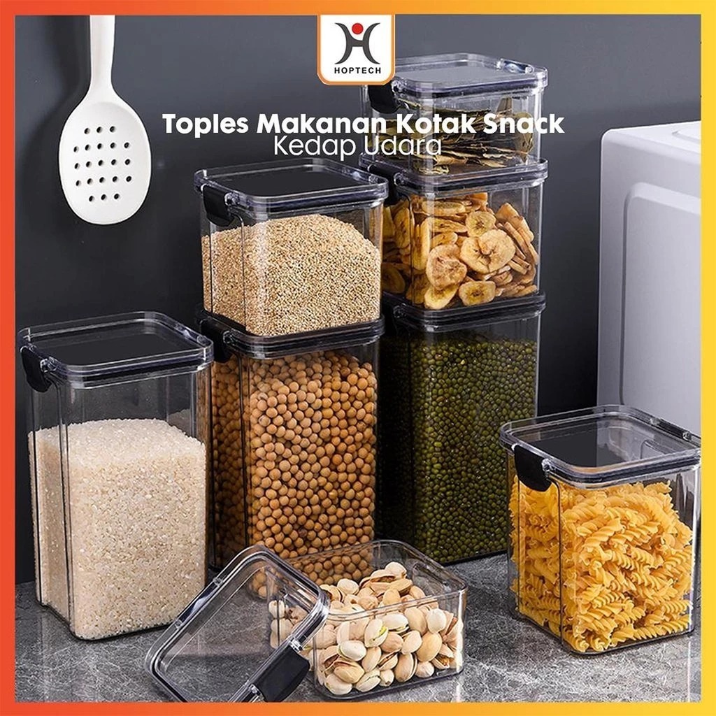 Hoptech - Toples Snack Kedap Udara Bening Kontainer Makanan Cereal Food Storage Jar 1800ml