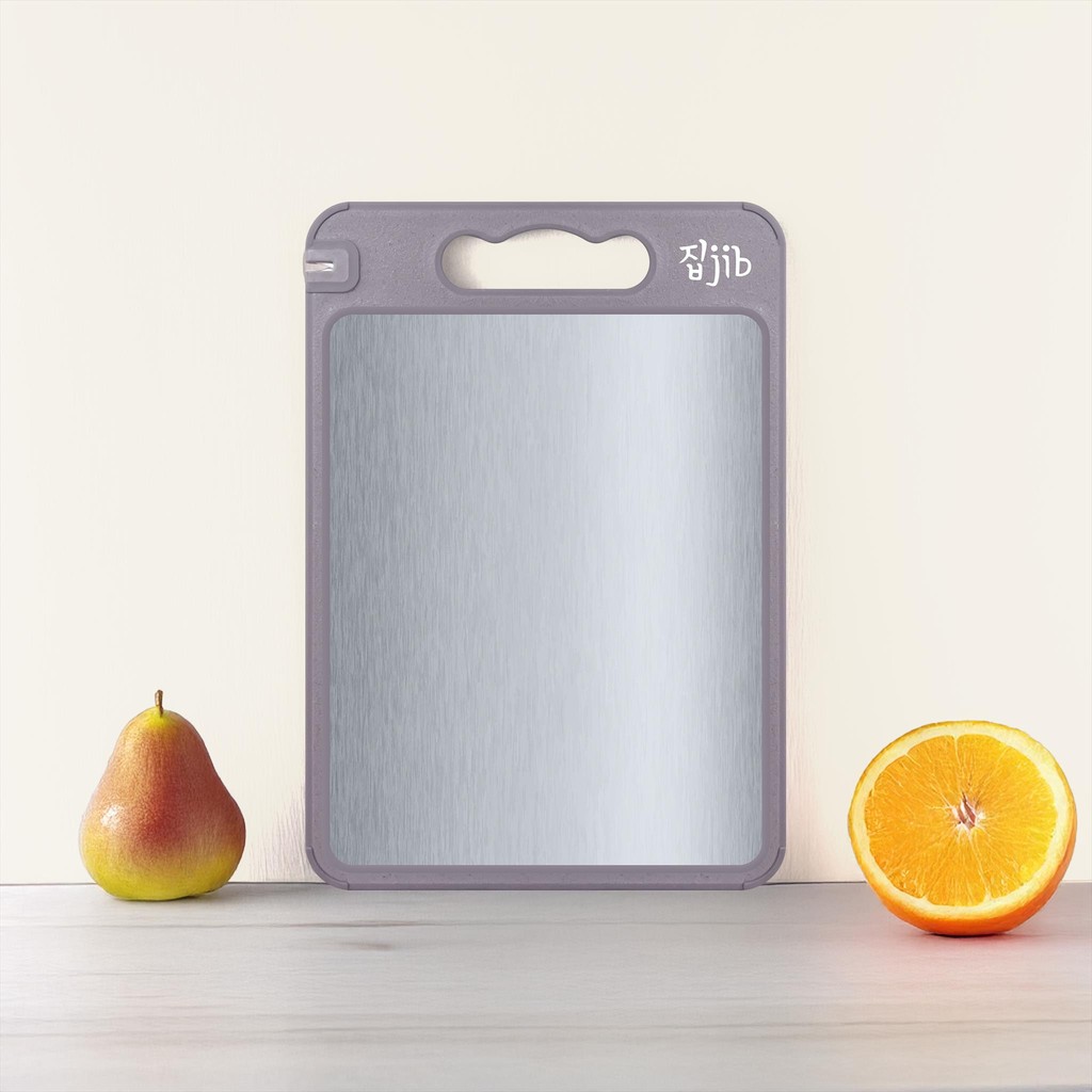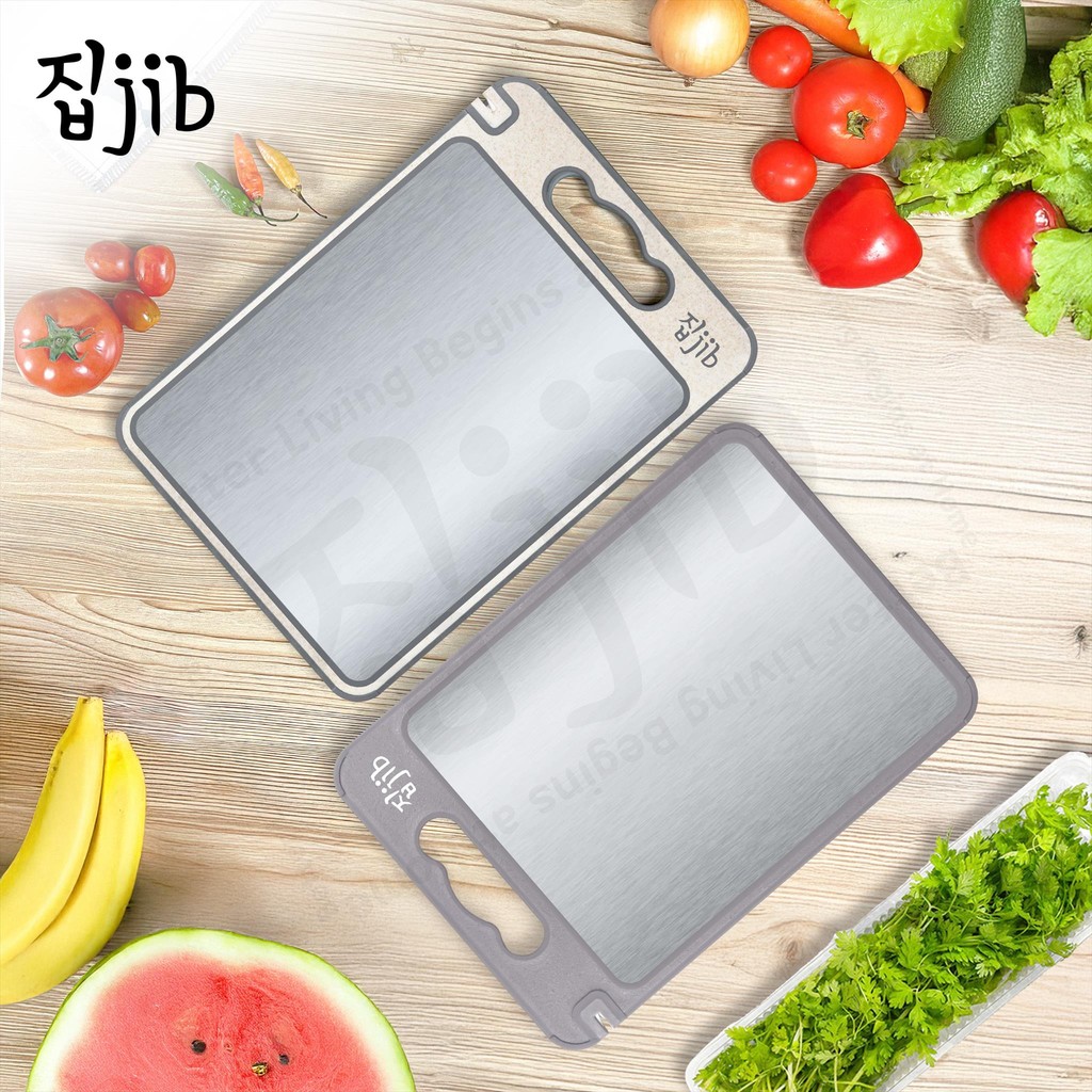 JIB Double Sided Cutting Board / Talenan stainless 2 sisi / Jerami Chopping Board Multifungsi dengan pemarut dan pengasah