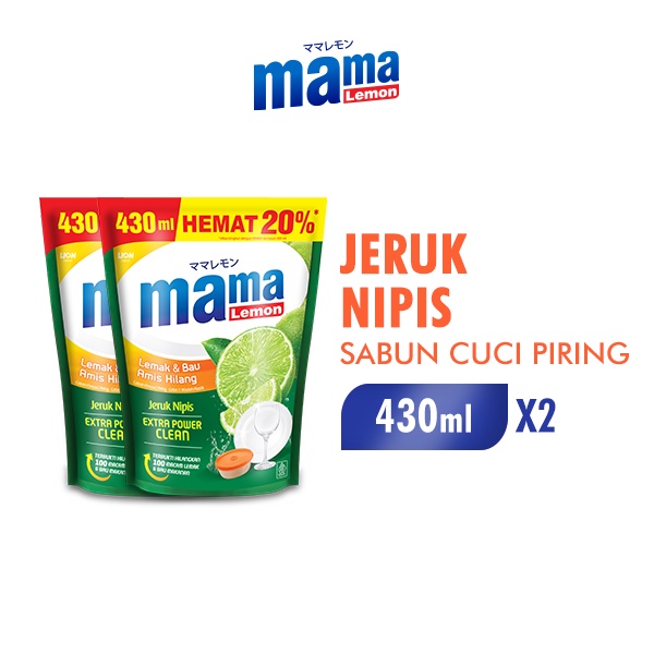Mama Lemon Sabun Cuci Piring Jeruk Nipis Pouch 430 ml x2