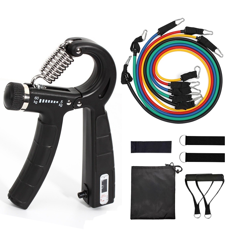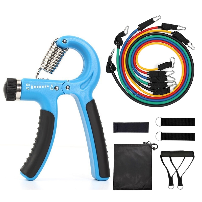 VOOVA Set Handgrip dengan Resistance Band/ Set Alat Olahraga/ Tali Pegas Olahraga Tangan/ Alat Olahraga Tangan