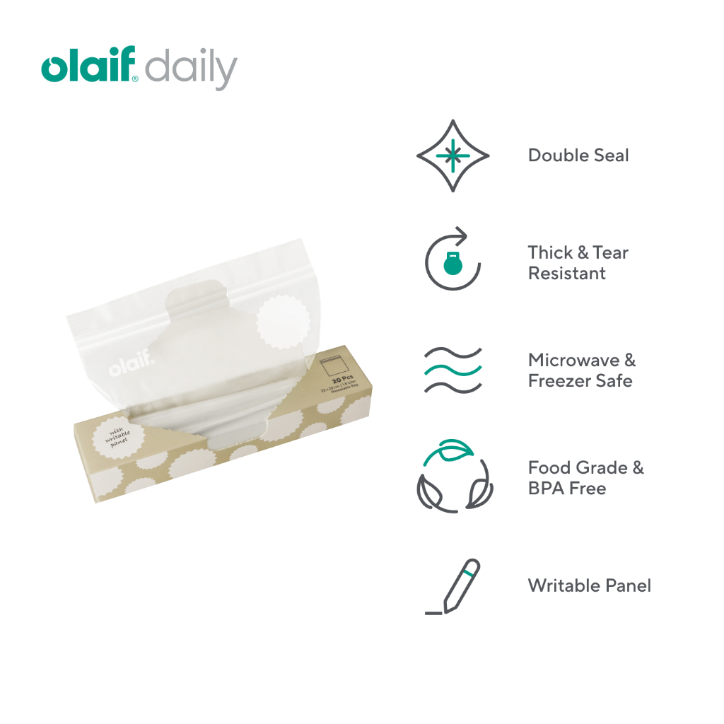 Olaif Daily Double Seal Ziplock Bag (20pcs) - Plastik Klip / Plastik Makanan / Penyimpanan Makanan