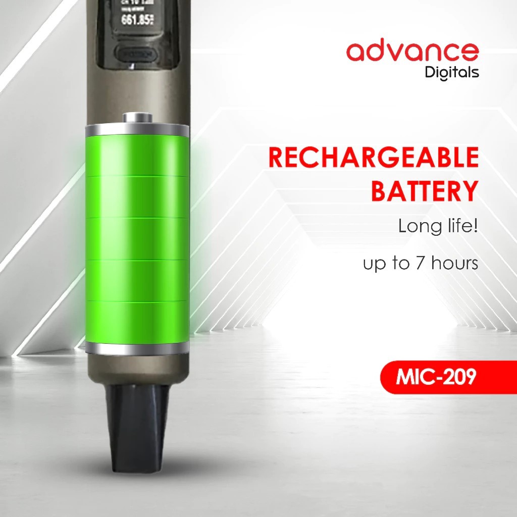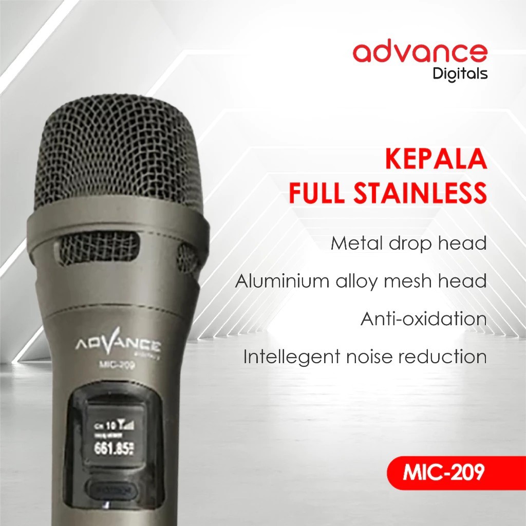 MICROPHONE WIRELESS ADVANCE MIC-209 MIC WIRELESS BLUETOOTH PROFESSIONAL DOUBLE DENGAN TOMBOL VOLUME MIC WIRELESS ASHLEY
