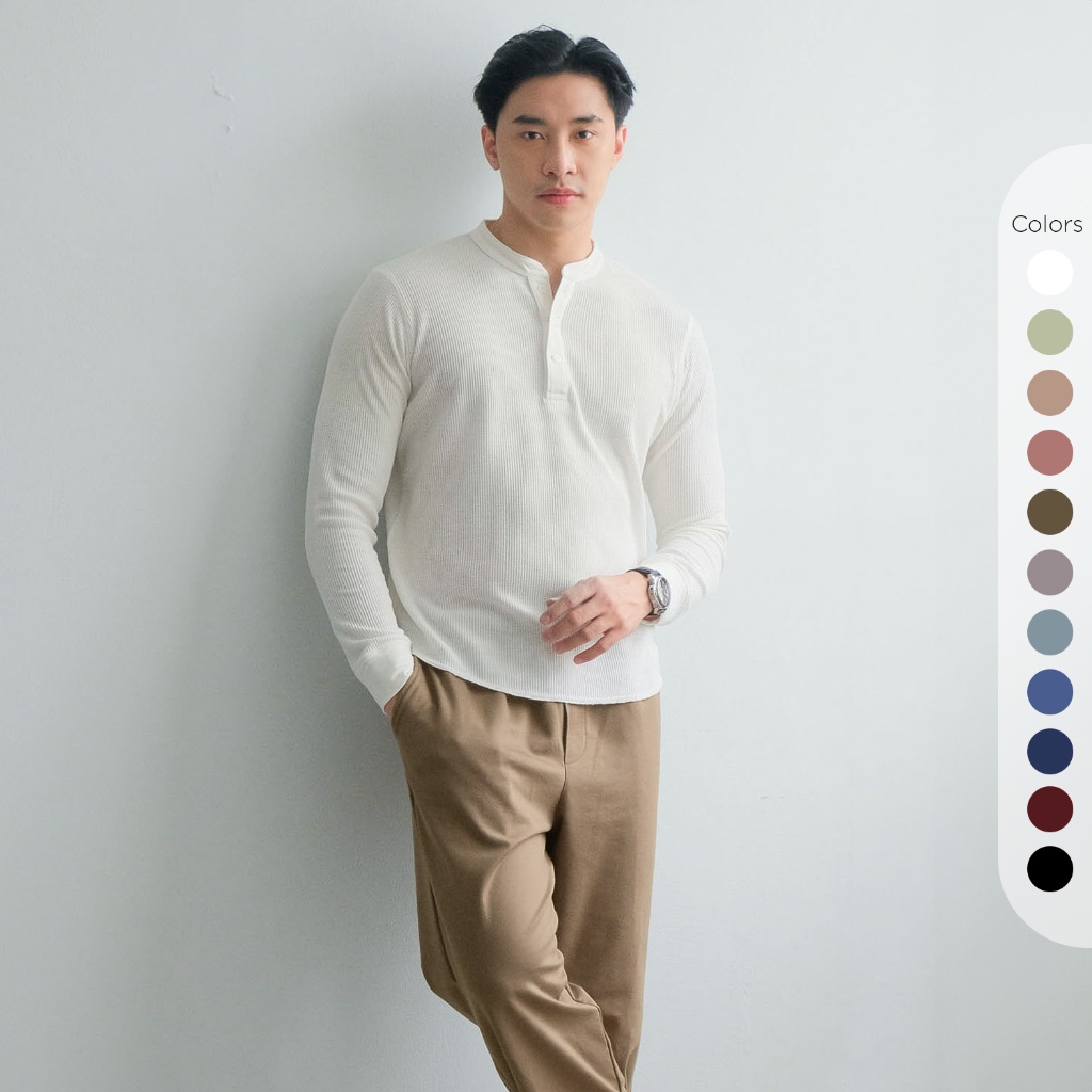 Isla for Men Smith Waffle Henley Neck T-Shirt Long Sleeve - Atasan Pria Lengan Panjang - Baju Pria - Baju Laki-laki