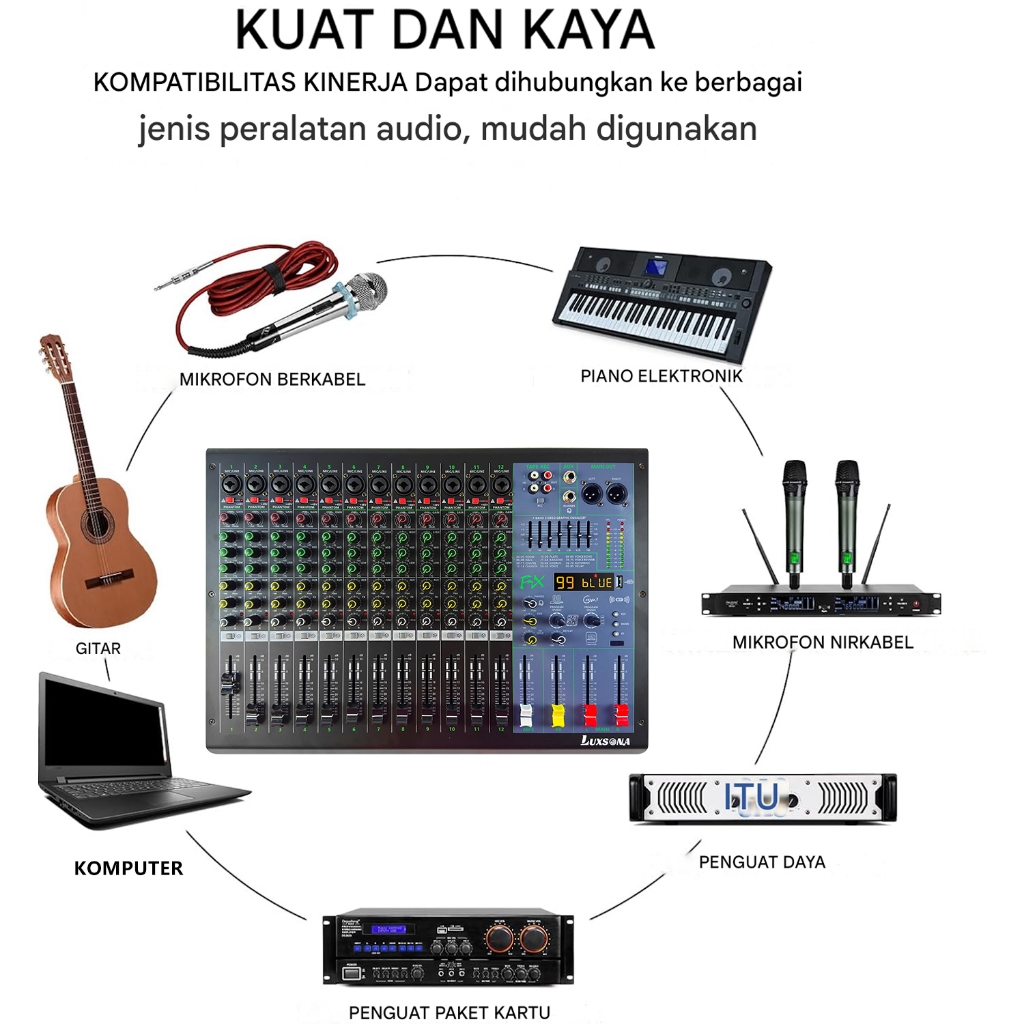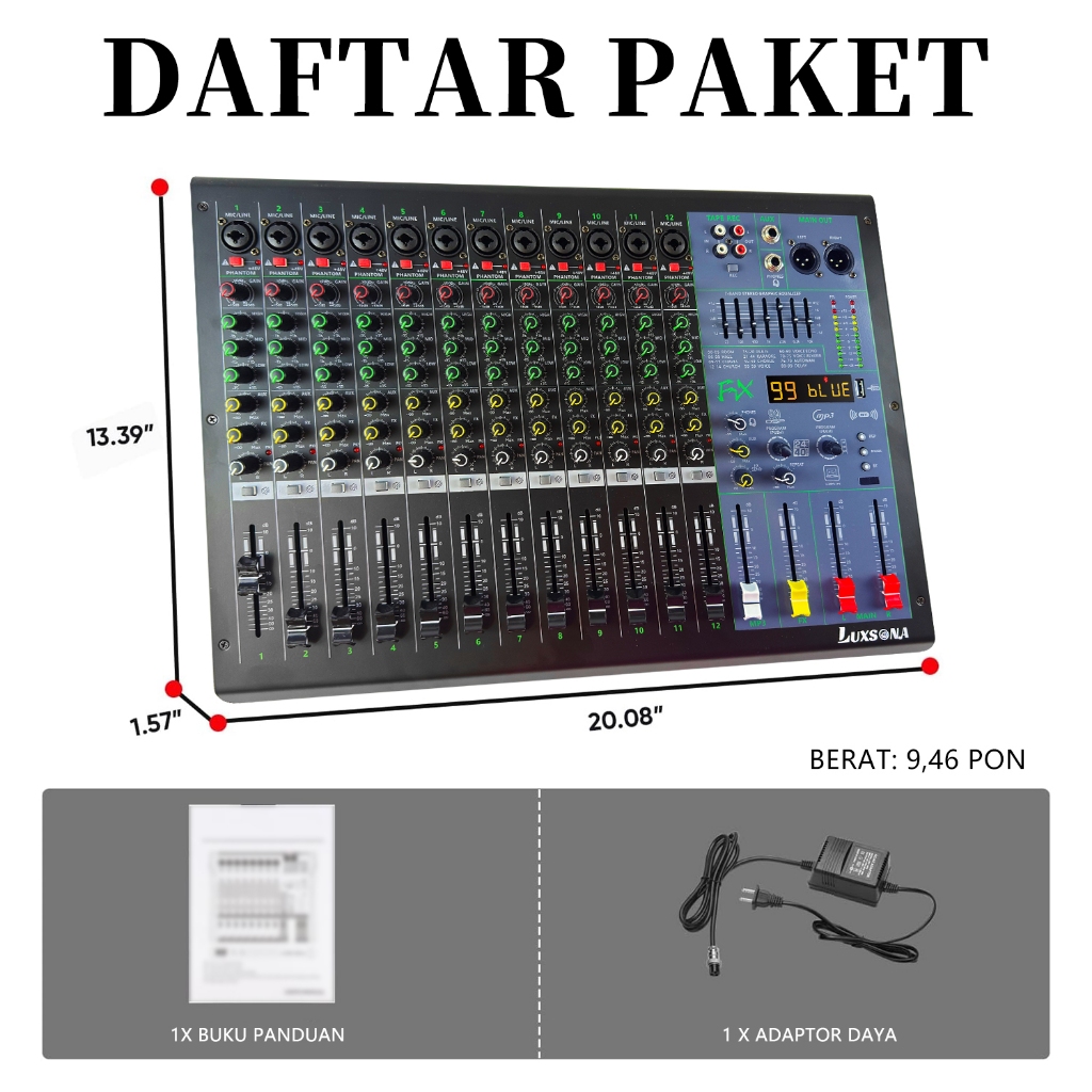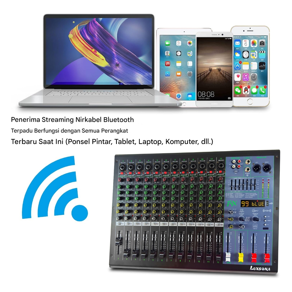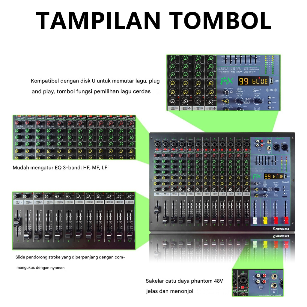 LUXSONA 12 Channel Mixer Audio Professional mixer karaoke 99DSP built-in 7-band EQ misker USB/SD/Blueto