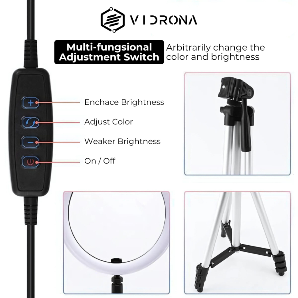 Ring Light Vidrona Elk27 Led 26Cm Dengan Tripod 1M Paket Komplit