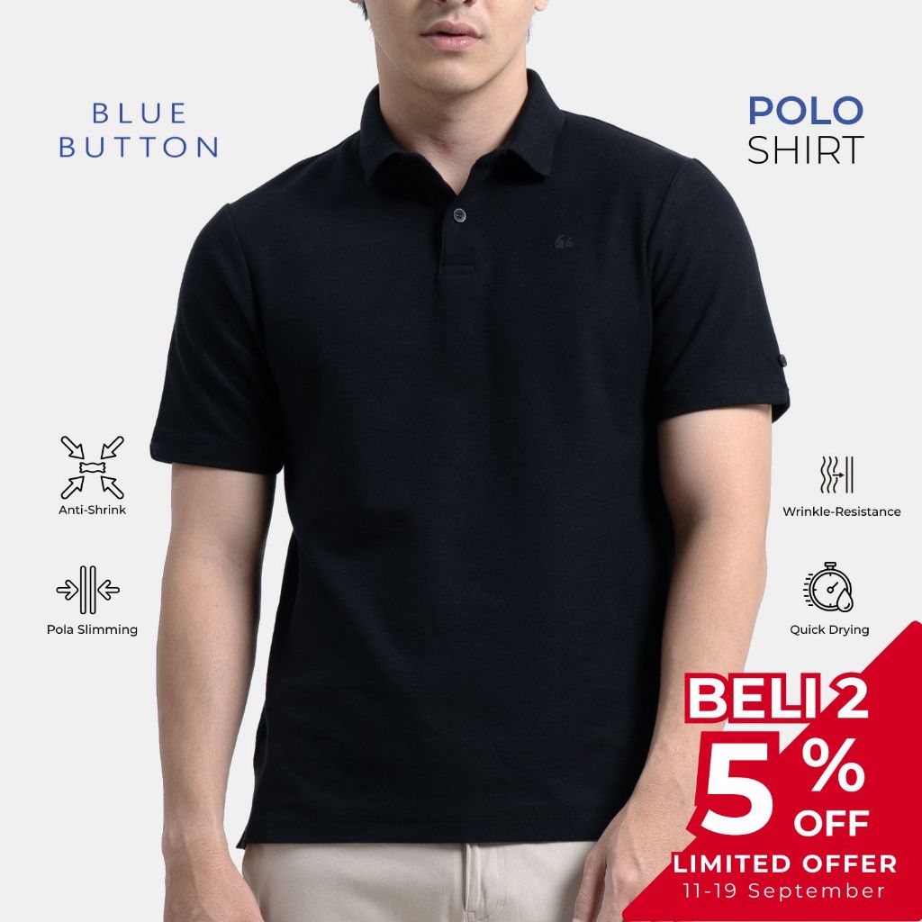 BLUEBUTTON Polo Shirt Pria Hitam Black