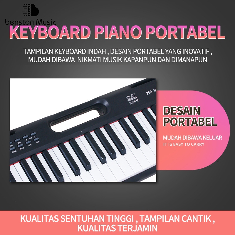 Benston Music Keyboard Elektrik 61 Tuts ,Keyboard Untuk Pemula , Portabel , Keyboard Elektrik Cerdas , Banyak Nada