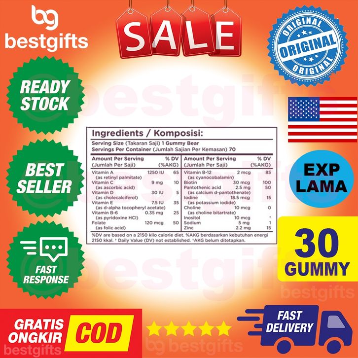 WELLNESS GUMMY KIDS CHILDREN CHILDRENS MULTIVITAMIN MULTI VITAMIN DAYA TAHAN TUBUH ANAK 30 GUMMIES