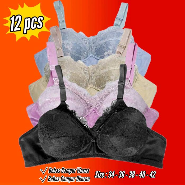 12 PCS (1 LUSIN) BRA TANPA KAWAT, BUSA TIPIS, KOMBINASI RENDA Bh Wanita